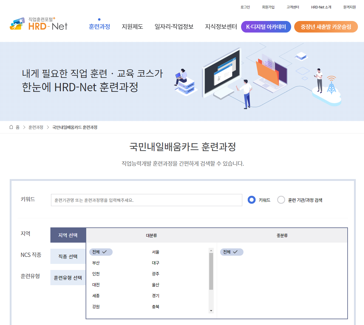 국민내일배움카드 사용처는 직업훈련포털 HRD-NET에서 확인 가능합니다.